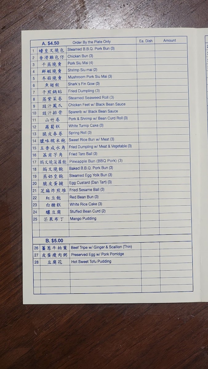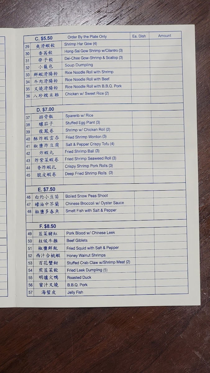 Overall, the menu supports casual dining occasions and is particularly suited for brunch and lunch when dim sum selections are commonly enjoyed. It allows for both quick orders and more extended meals featuring traditional Chinese seafood and meat dishes.